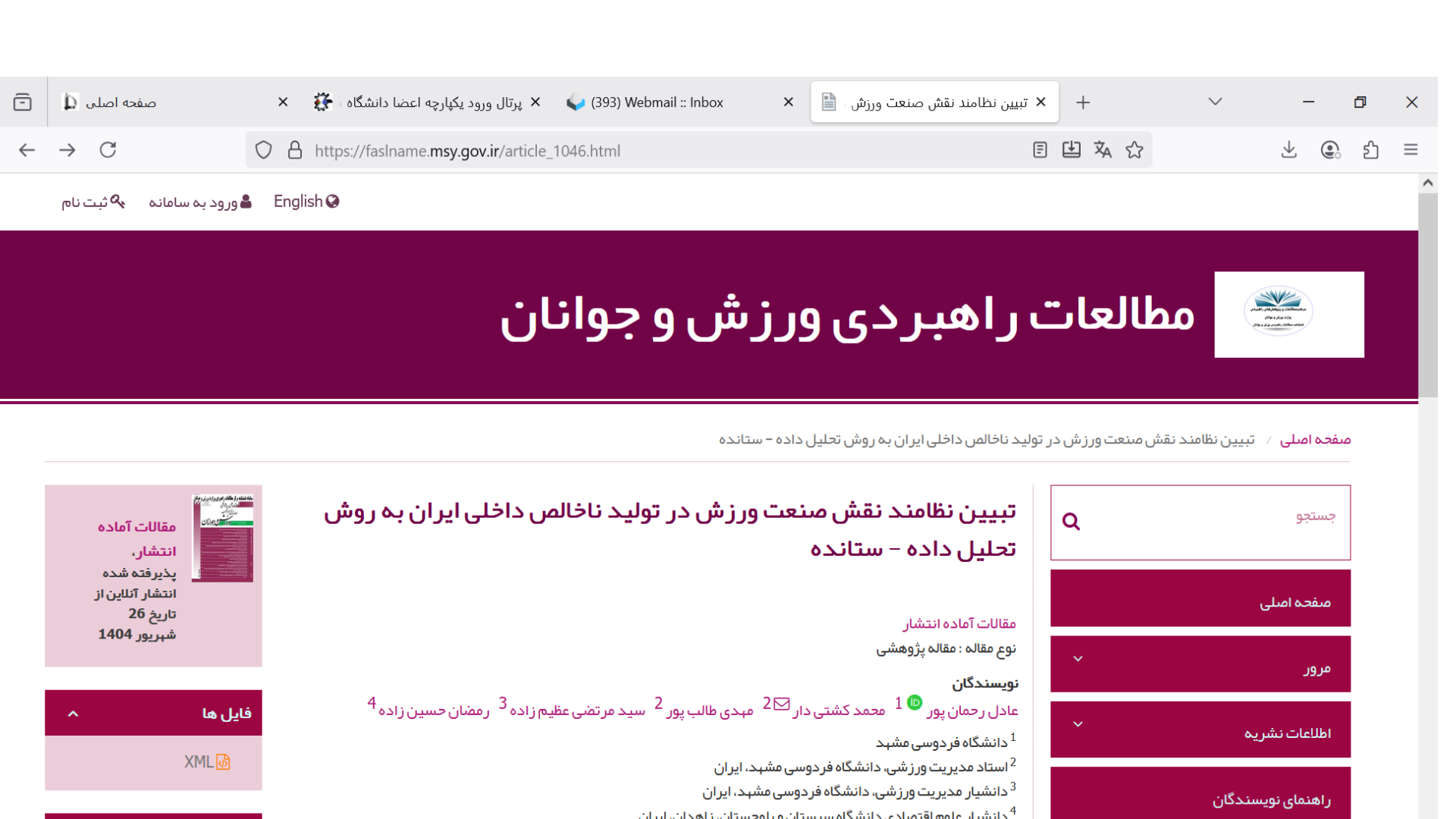 journal = {مطالعات راهبردی ورزش و جوانان},