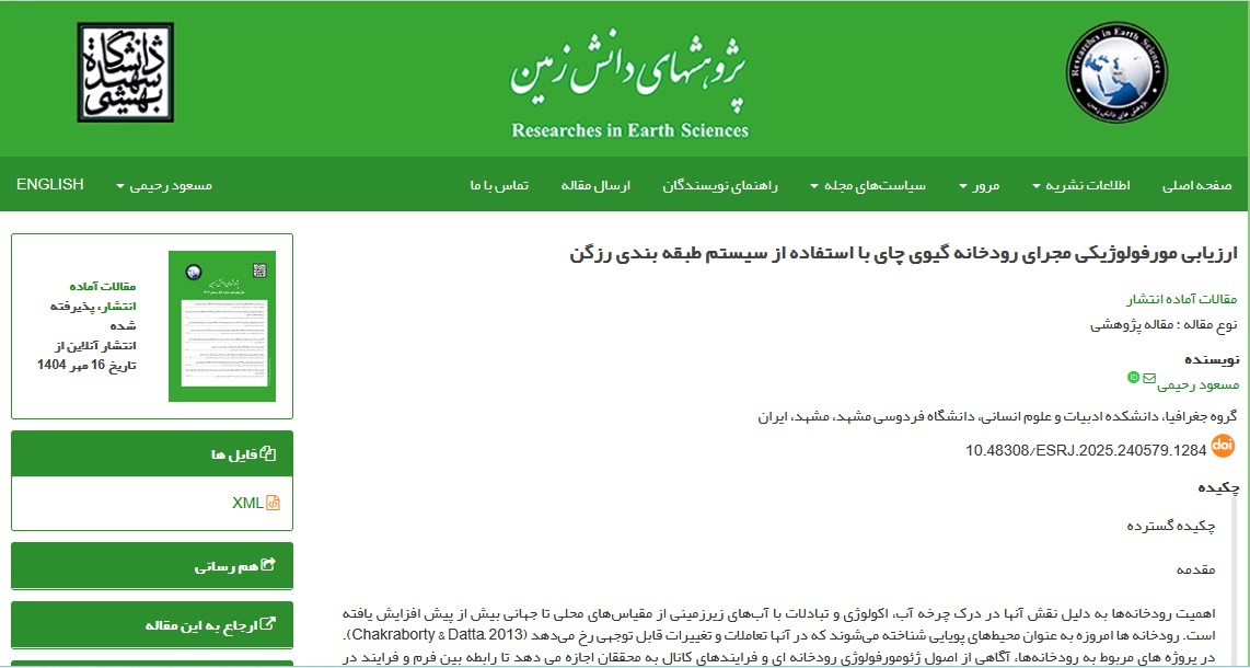 عنوان : ( ارزیابی مورفولوژیکی مرای رودخانه گیوی چای با استفاده از سیستم طبقه بندی رزگن )