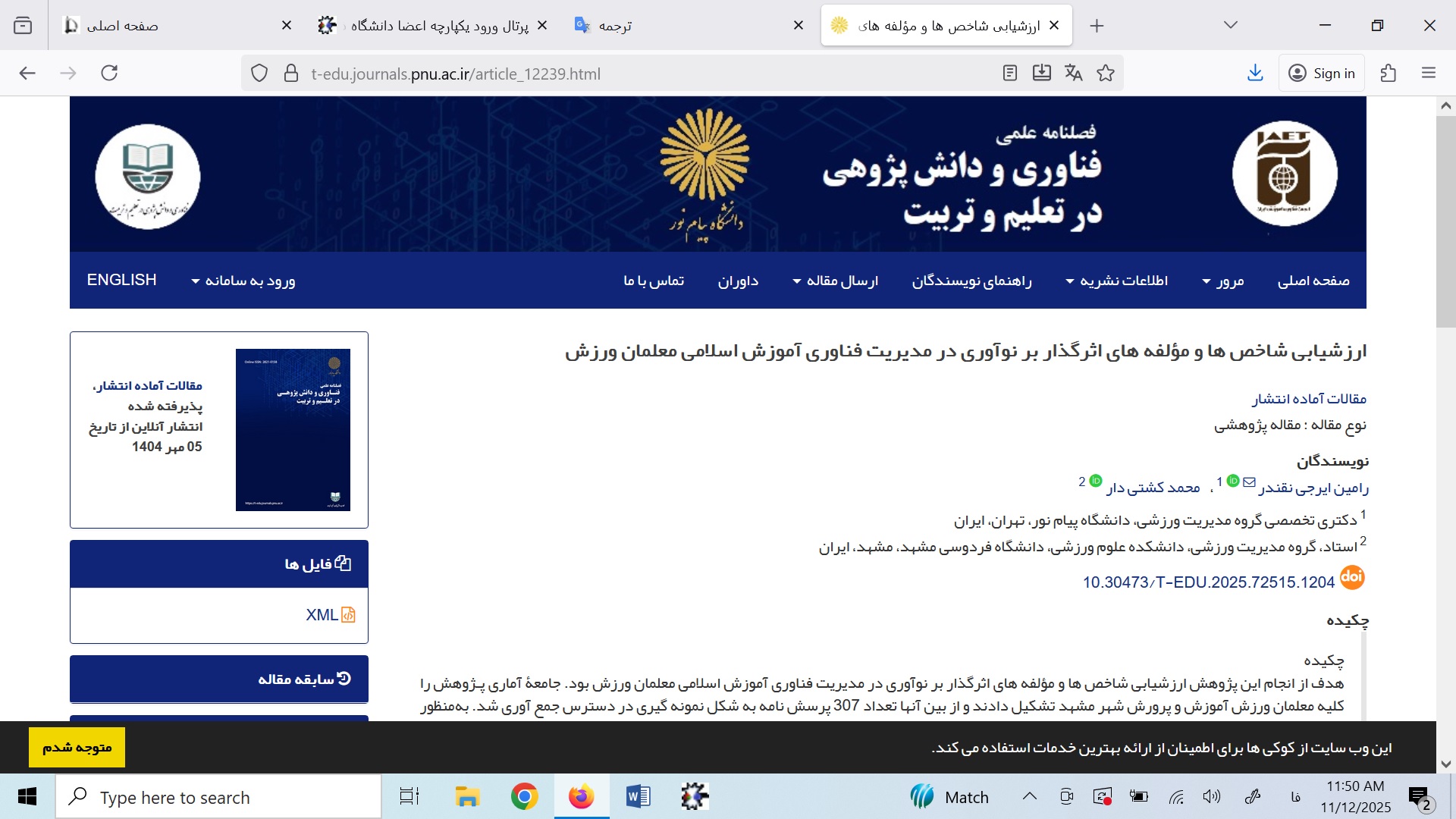 journal = {فناوری و دانش پژوهی در تعلیم و تربیت},